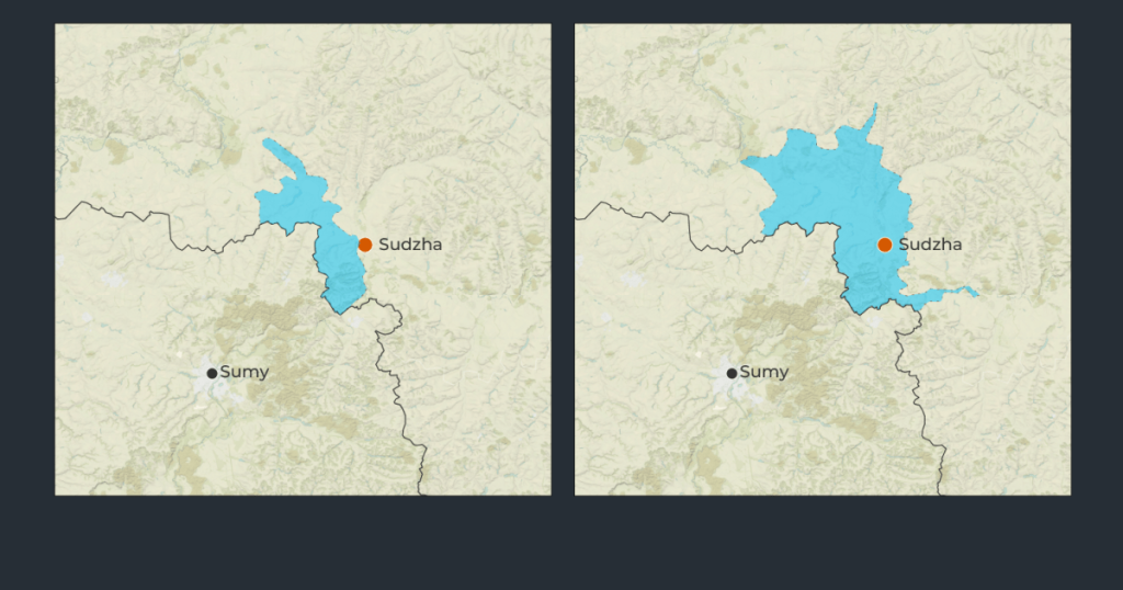 أفاد معهد دراسة الحرب أن لقطات تم تحديد موقعها الجغرافي تشير إلى أن القوات الأوكرانية كانت نشطة مؤخرًا في Sudzha وشمال Zaoleshenka. في 12 أغسطس، زُعم أن أوكرانيا استولت على بلدة سودجا، وفقًا لمصادر روسية.